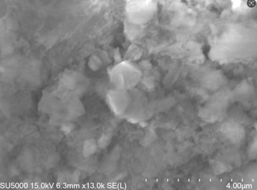 These crystalline formations integrate permanently with the concrete matrix, effectively blocking water and other liquids from any direction, thus providing permanent waterproofing, anti-corrosion protection, and reinforcement of the concrete structure. The repair works were completed on November 23, 2023, and passed inspection. All cracks on the bridge deck were observed to be sealed. After nearly one year of continuous monitoring, the cracks remained closed with no new cracking observed. With the owner’s approval, on November 4, 2024, core samples were taken from both treated areas (with XYPEX Concentrate) and untreated areas at the underside of the T-beam for microstructural examination using a scanning electron microscope (SEM) at 5000× magnification to evaluate crystalline formation.