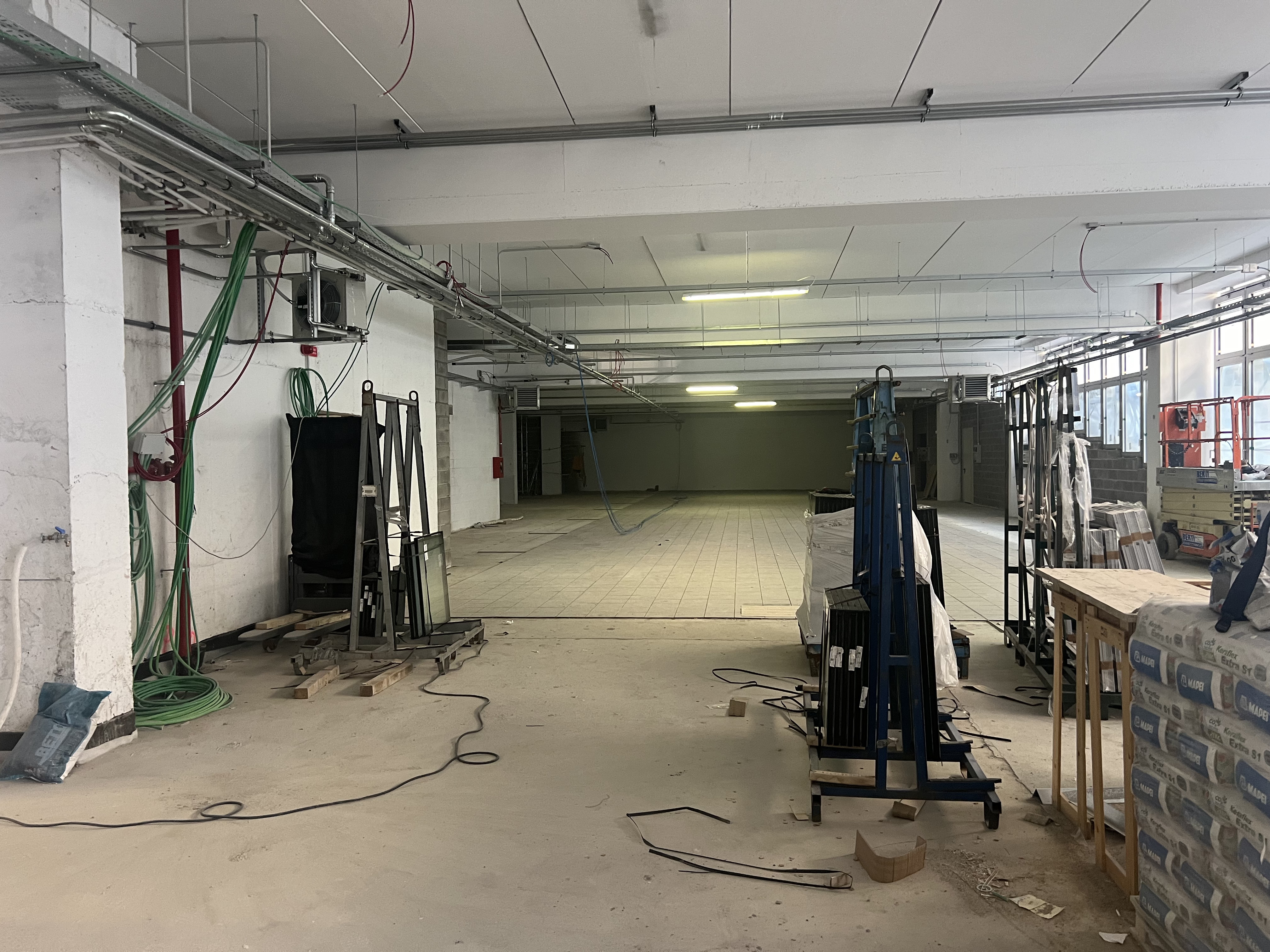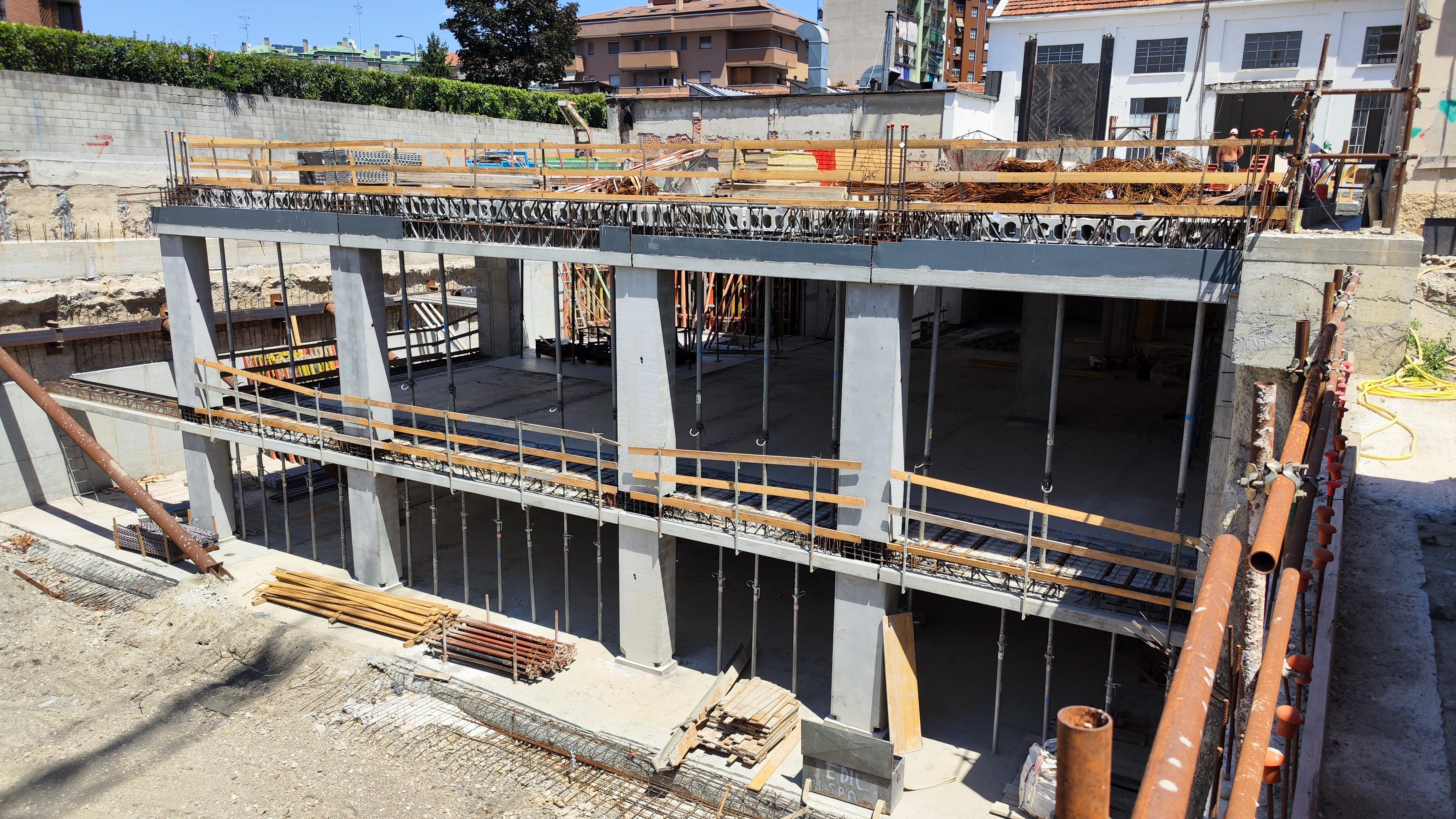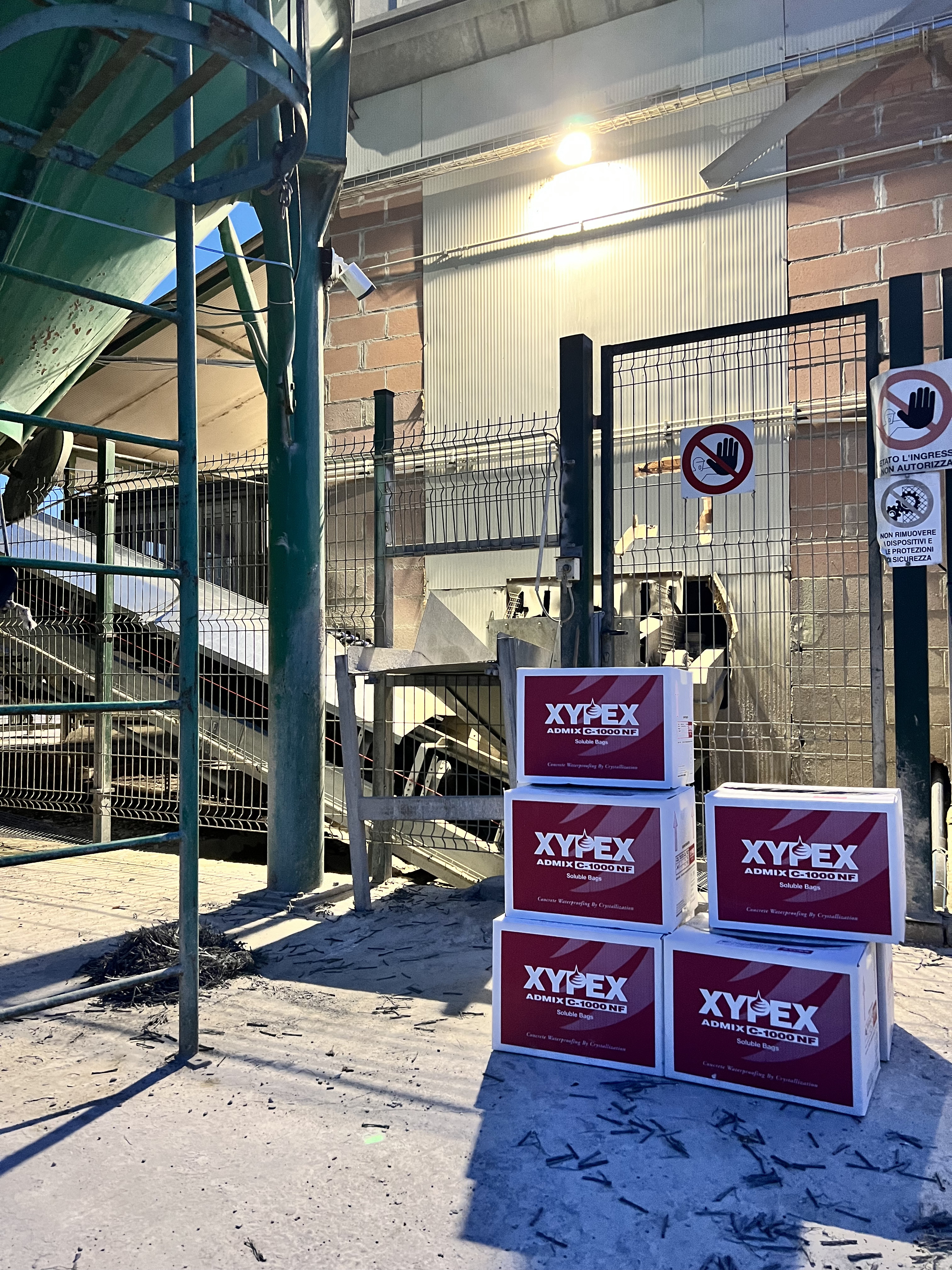 Integral Waterproofing: XYPEX ADMIX C-1000 NF (and C-500 NF for industrial floors) was added directly to the fresh concrete for the foundation slab, perimeter RC walls, and the fire-fighting water tank. The Admix initiates an internal chemical reaction, forming a non-soluble crystalline structure that permanently fills capillary pathways, ensuring integral waterproofing and durability enhancement of the concrete mass.