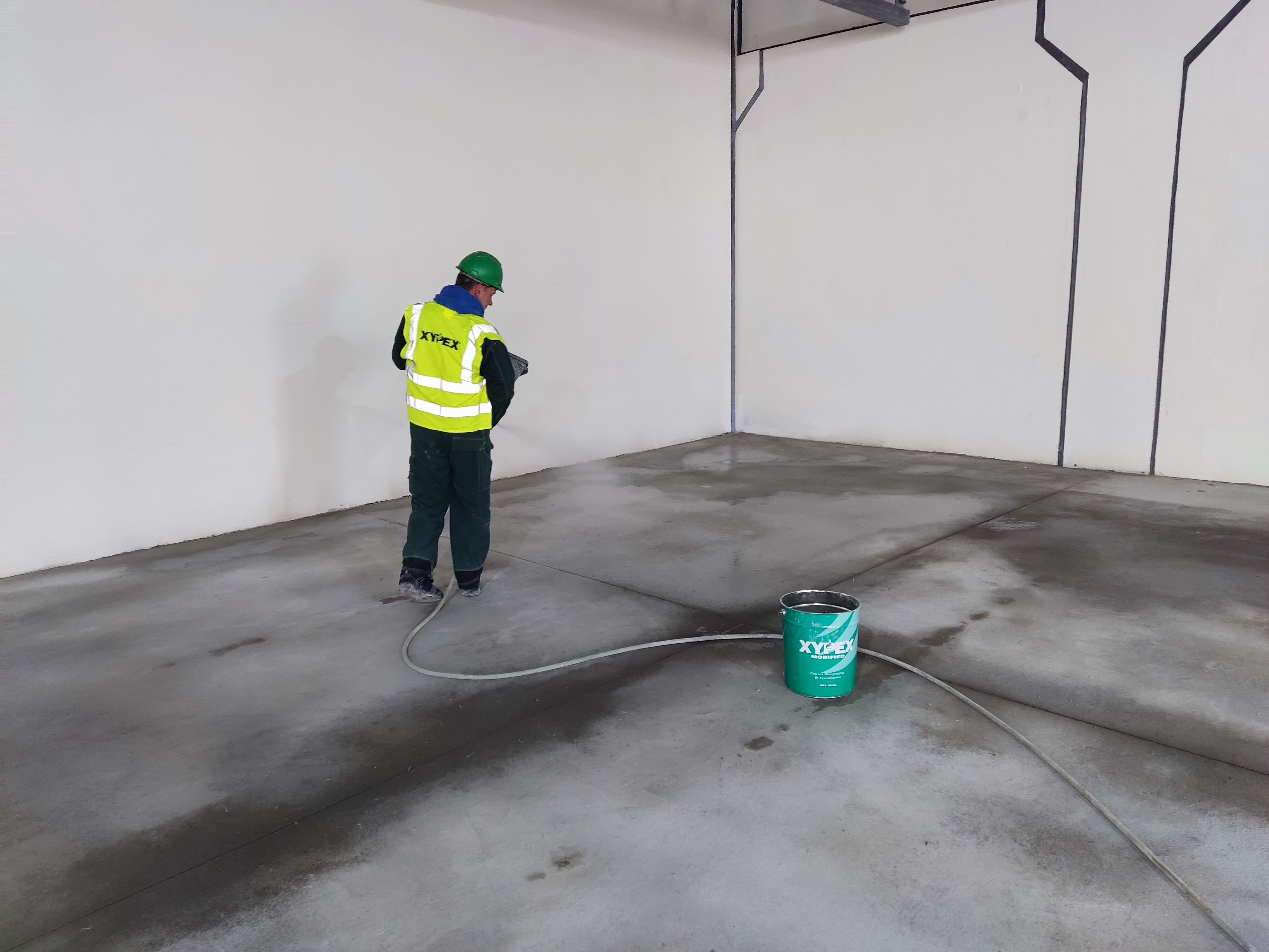 To ensure long-term protection, XYPEX Concentrate and XYPEX Modified crystalline waterproofing products were selected. A total area of approximately 700 m2 was treated. XYPEX Concentrate forms the foundation for reliable waterproofing, its active chemical components penetrate deep into the concrete, where they create an insoluble crystalline structure that fills pores and capillaries.